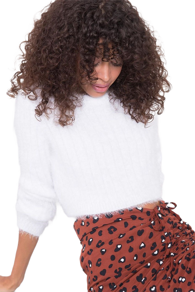 Short cut sweater with long sleeves in ecru color.