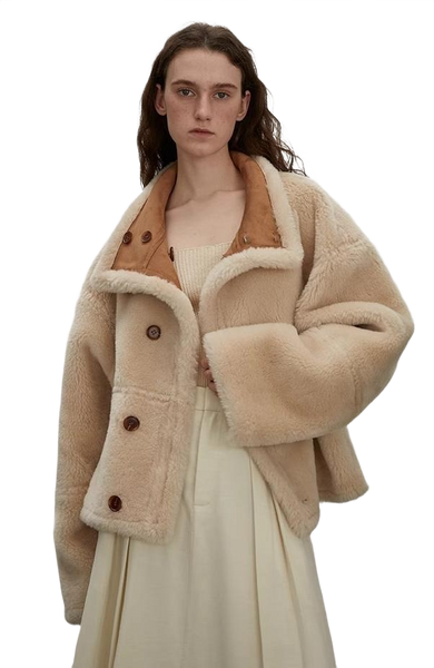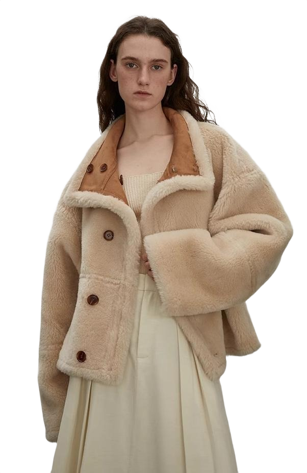 New sheep shearling is combined with exclusive face-wearing technology, and the wool surface is light in texture. The leather and fur sides are dyed in two colors to create a reversible, reversible jacket.